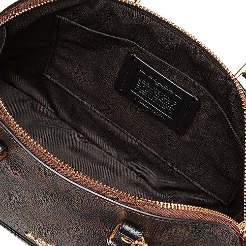 コーチのシグネチャー柄ハンドバッグです。丸みのあるフォルムがエレガントで、小柄な方にもぴったり。取り外し可能なショルダーストラップ付きで、ON・OFF問わず活躍します。汚れに強い素材で、プレゼントにもおすすめです。
