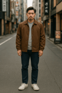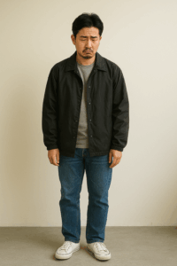 👉 まとめると、サイズ感・全身バランス・着こなしの方向性を意識しないと、コーチジャケットは簡単にダサく見えてしまうアイテムだと言えます。