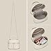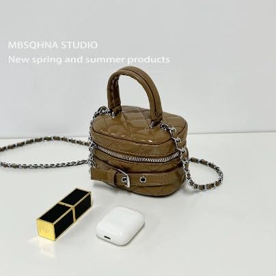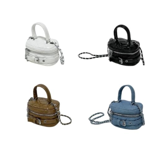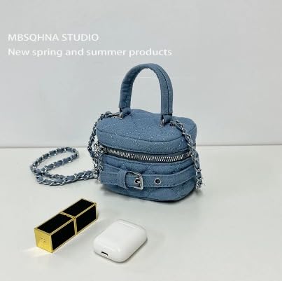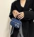 PU革とポリエステル製で、デニム調のデザインが目を引くミニバニティバッグ。横13cm、高さ8.5cm、幅9cmとコンパクトながら、肩紐110cmで斜め掛けも可能。約160gと軽量で普段使いに最適です。