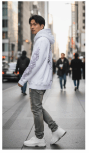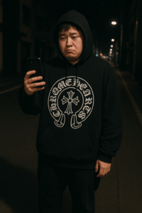 高級パーカーに対して、チープなスニーカーや合わないアクセサリーを合わせると一気にアンバランス。せっかくのクロムハーツが台無しになり、むしろ「ダサい人ほどブランドに頼っている」と見えてしまう。