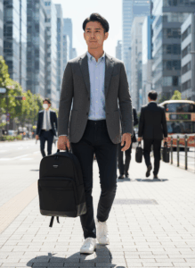 特に私の場合、服装がジャケットスタイル中心だったので、アウトドア感の強い大きめリュックが浮いてしまい、「カジュアルダサい」状態になっていました。